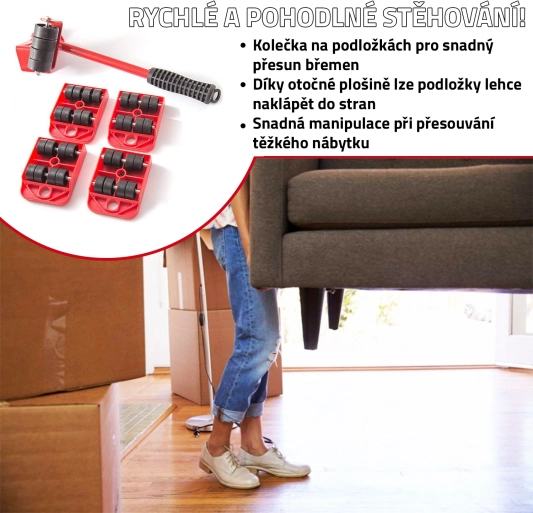 Zestaw oszczędza czas i siły przy drobnych przeprowadzkach, sprzątaniu i zmianach aranżacji pomieszczeń. Wystarczy podnieść, podłożyć i przesunąć – szybko i bez uszkadzania podłóg.