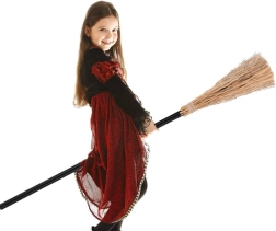 Długa tyczka i rozpościerające się "włosy" nadają miotle realistyczny czarodziejski efekt, idealny na przyjęcia kostiumowe.