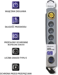 Zaprojektowana zgodnie z najnowszymi trendami, w eleganckiej szarej barwie, doskonale pasuje do każdego wnętrza. Ochrona przed przepięciami chroni podłączone urządzenia przed wahanami napięcia za pomocą wysoko wydajnego warystora.
