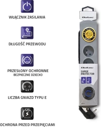 Chcesz zapewnić ochronę dla swoich urządzeń? Ta listwa oferuje szereg funkcji bezpieczeństwa, w tym ochronę przeciwprzepięciową dzięki warystorowi, osłony gniazd jako zabezpieczenie przed dziećmi, a także wykonanie z niepalnego materiału PP.