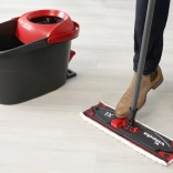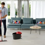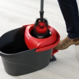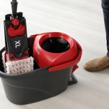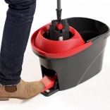 Zestaw zawiera wiadro z mechanizmem obrotowym, który umożliwia łatwe i higieniczne odciskanie mopa bez dotyku.