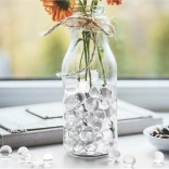 Przezroczyste perełki nadają aranżacjom czysty, nowoczesny wygląd oraz stabilizują łodygi kwiatów i świece w szklanych naczyniach.