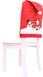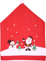 Świąteczny pokrowiec na oparcie krzesła przemieni każdy kąt domu w przytulne miejsce na wyjątkowe chwile. Czerwony materiał z nadrukiem Mikołaja i bałwanka, płatków śniegu i choinek nawiązuje do tradycyjnych motywów, a całość wieńczy miękki pompon niczym na czapce.