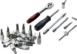 - Grzechotka 1/4" – 1 sztuka, 150 mm z mechanizmem pozycjonowania
