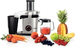 Dzięki sokowirówce Bosch nie musisz kroić owoców i warzyw dzięki dużemu otworowi wsadowemu o średnicy 84 mm. Jej ceramiczny nóż zapewnia wysoką skuteczność i łatwe czyszczenie. Możesz uzyskać do 1,5 litra soku w trakcie jednego procesu wyciskania.