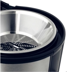 - Wysoka wydajność – stalowe sitko dla klarownego soku.