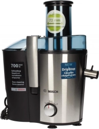 Wydajna wyciskarka BOSCH do szybkich domowych soków z owoców i warzyw. Oferuje silnik 700 W, otwór wsadowy 73 mm na całe kawałki, stalowe sitko dla klarownego soku oraz czystą pracę dzięki DripStop. Dwa tryby do miękkich i twardych składników (2 prędkości), bezpieczna praca z zabezpieczeniem i łatwe czyszczenie.