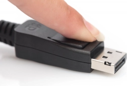 Zatrzask wtyku DisplayPort utrzymuje kabel stabilnie w porcie i zapobiega przypadkowemu odłączeniu podczas pracy.