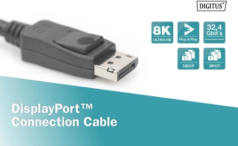 - Uniwersalne zastosowanie – połączenie PC/laptopa z monitorem DisplayPort