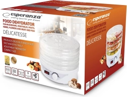 Dzięki mocy 250 W i zintegrowanemu wentylatorowi suszarka zapewnia szybkie, dokładne i równomierne suszenie produktów, co przyczynia się do zachowania wszystkich właściwości aromatycznych i smakowych. Dzięki kompaktowym rozmiarom łatwo zmieści się nawet w małej kuchni, a przechowywanie nie będzie problemem.