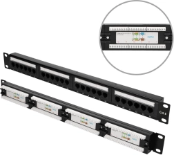 Ten patchpanel obsługuje połączenia kablowe dla Cat5 i Cat6, co zapewnia elastyczność dla różnych typów instalacji sieciowych.