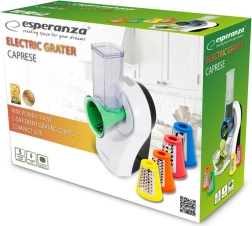 Elektryczna krajalnica Esperanza jest idealna do rozdrabniania owoców, warzyw, twardych serów, czekolady, orzechów oraz do produkcji kruszonki. Dzięki swoim pięciu wymiennym końcówkom dostosujesz kształt i grubość rozdrobnionych produktów według potrzeb danego dania.
