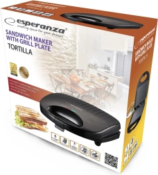 Delektuj się szybką przygotowaną ulubionych kanapek i tortilli. Wydajna moc 1000 W zapewnia sprawne nagrzewanie, a automatyczna regulacja temperatury utrzymuje idealne warunki do równomiernego opiekania.