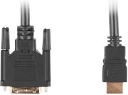 Uniwersalny kabel HDMI–DVI-D marki LANBERG do niezawodnego połączenia monitora, projektora lub telewizora. Oferuje komunikację dwukierunkową, maks. rozdzielczość 1920 × 1200 @ 60 Hz oraz pozłacane złącza dla stabilnej transmisji. Podwójne ekranowanie i miedziane przewodniki 30AWG zapewniają długą żywotność i czysty sygnał bez zakłóceń.