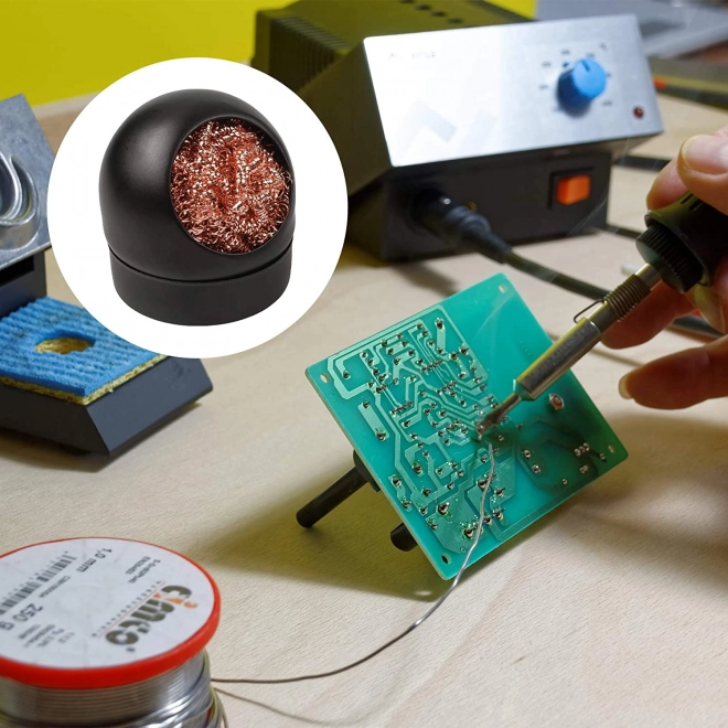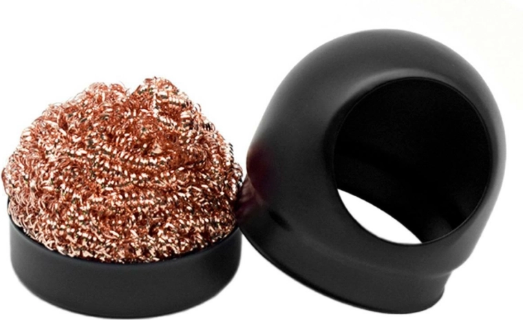 Środek czyszczący składa się z dwóch części, z których pierwszą jest materiał z wełny metalowej. Groty lutownicze można wycierać o ten materiał, aby usunąć pozostałości lutu znacznie skuteczniej niż przy użyciu standardowej gąbki. Sama wełna metalowa jest dostarczana w kompaktowym, zaokrąglonym uchwycie, który pomaga zapewnić, że czyścik do grotów jest praktyczny i nie zajmuje przestrzeni roboczej.