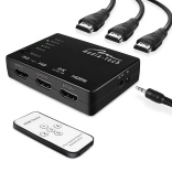 Urządzenie działa w pełni automatycznie (Plug & Play) – bez instalacji oprogramowania. Przełączanie jest możliwe przyciskiem na przełączniku lub dołączonym pilotem. Wskaźniki LED czytelnie pokazują aktywne wejście. Idealne do salonu, kącika gamingowego i biura.