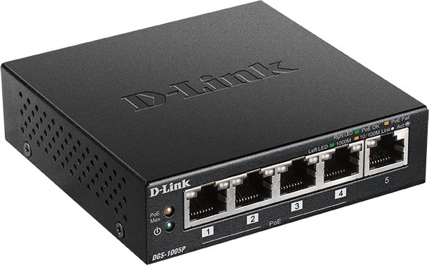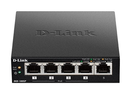 Pięcioportowy gigabitowy, niezarządzalny przełącznik PoE DGS‑1005P umożliwia podłączenie do sieci urządzeń zgodnych z Power over Ethernet (PoE), takich jak punkty dostępowe, kamery sieciowe i telefony IP. Przełącznik DGS‑1005P został zaprojektowany z myślą o użytkownikach domowych i małych firmach, wyróżnia się kompaktowymi wymiarami i cichą pracą, dzięki czemu idealnie nadaje się do większości pomieszczeń i biur.
