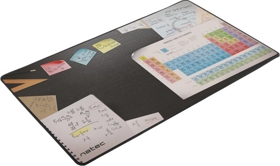 Podkładka na stół Natec Science Maxi zapewnia nie tylko wygodne użytkowanie myszki i klawiatury dzięki swoim wymiarom, ale także ochronę biurka przed uszkodzeniami. Praktyczny i edukacyjny design tej podkładki obejmuje układ okresowy pierwiastków, fizyczne i chemiczne stałe oraz podstawowe wzory, co czyni tę podkładkę idealnym narzędziem dla studentów.