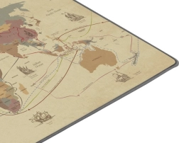 Jedyna w swoim rodzaju grafika podkładki przedstawia mapę świata z zaznaczonymi głównymi szlakami odkrywczymi, co dodaje element historyczny i edukacyjny.