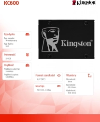 Szybki i niezawodny wewnętrzny dysk do PC i laptopów: SSD 2,5" o pojemności 256 GB, z interfejsem SATA III, prędkościami do 550/520 MB/s, nowoczesną pamięcią 3D TLC NAND oraz bezpieczeństwem dzięki sprzętowemu szyfrowaniu AES‑256, TCG Opal i eDrive.