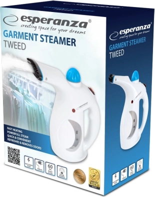 Ręczny parownic do ubrań ESPERANZA Tweed to praktyczny pomocnik do szybkiego wygładzania zagnieceń i odświeżania tkanin bez deski do prasowania. Nagrzewanie w 60 sekund, mocna para 15 g/min i łatwa obsługa zapewniają czyste i schludne ubrania oraz tekstylia domowe w mgnieniu oka.