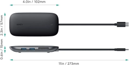 Kompaktowy hub USB‑C AUKEY 8w1 rozszerza jeden port na HDMI 4K@30 Hz, Gigabit Ethernet, 3× USB 3.1/3.0 (5 Gb/s), czytniki SD/microSD oraz USB‑C Power Delivery 100 W. Idealny dla nowoczesnych laptopów i pracy w podróży.