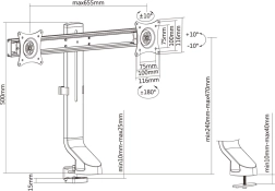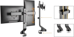 Uchwyt jest przeznaczony do monitorów o przekątnej 17"–27" i maksymalnej wadze 14 kg. Kompatybilny z telewizorami i monitorami LED, LCD, OLED marek Sony, LG, Samsung, Philips, Sharp, Panasonic, Toshiba, Grundig, Pioneer, JVC, Benq, Sanyo, NEC, Hyundai, Hitachi.