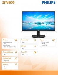 Korzystaj z wygodnej pracy i multimedialnej rozrywki na kompaktowym monitorze 21,5″ z technologią VA. Panel VA wyróżnia się wysokim kontrastem i głęboką czernią, dzięki czemu tekst jest czytelny, a filmy i zdjęcia wyglądają naturalnie. Dzięki HDMI łatwo podłączysz monitor do komputera, laptopa lub innych urządzeń.