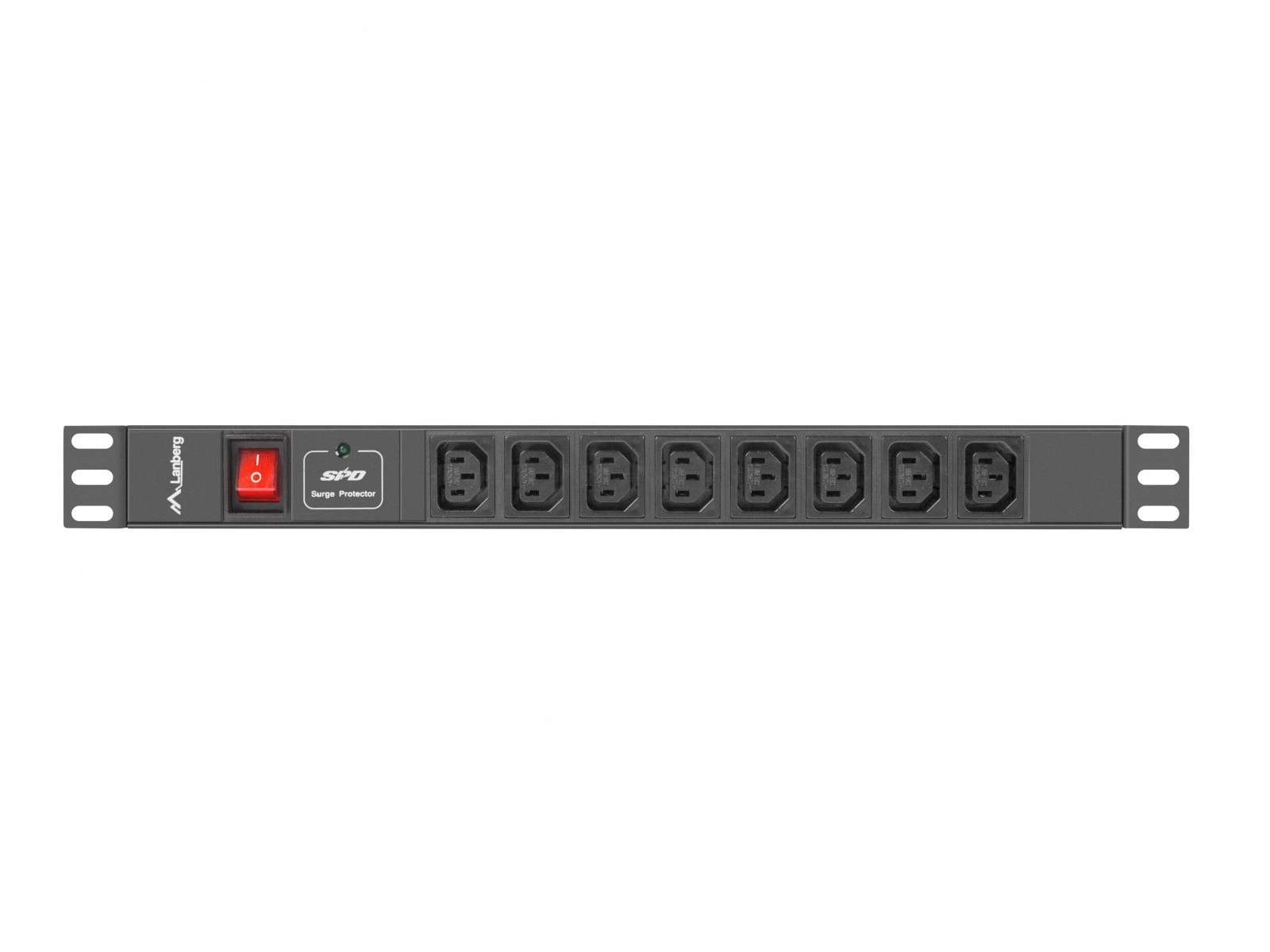 Dla ochrony infrastruktury dostępne są zabezpieczenie przeciwprzepięciowe oraz wyłącznik automatyczny z zieloną diodą LED sygnalizującą stan. Anodowana aluminiowa obudowa, 8× wyjście IEC C13, wejście IEC C20 oraz zdejmowane/obrotowe uszy montażowe ułatwiają integrację w profesjonalnych centrach danych i firmowych szafach rack.