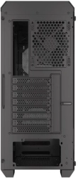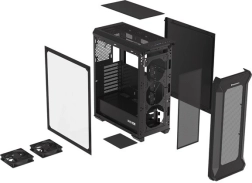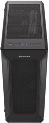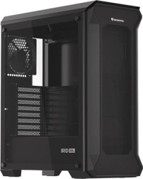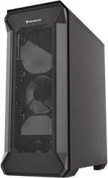 Obudowa z perforowanym przednim panelem i hartowanym szkłem z boku dodaje elegancji i trwałości. Czarny stalowy materiał zapewnia estetyczny wygląd.