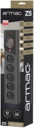 ARMAC Z5 to uniwersalna listwa przeciwprzepięciowa z pięcioma gniazdami i solidną ochroną wrażliwej elektroniki. Wysokiej klasy warystor reaguje w czasie do 25 ns i pochłania impulsy do 6000 A, chroniąc urządzenia przed niebezpiecznymi skokami napięcia. Zintegrowany automatyczny wyłącznik 10A/250V umożliwia łatwe przywrócenie zasilania po usunięciu przyczyny usterki.