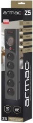 ARMAC Z5 to nowoczesna listwa przeciwprzepięciowa zaprojektowana do ochrony komputerów, peryferiów, TV, sprzętu audio/wideo oraz urządzeń domowych. Zaawansowany warystor z czasem reakcji poniżej 25 ns pochłania impulsy aż do 6000 A i chroni podłączone urządzenia przed niebezpiecznymi skokami napięcia. Automatyczny wyłącznik 10 A/250 V umożliwia ponowne uruchomienie po usunięciu zwarcia lub przeciążenia.