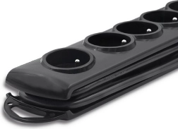 Design w klasycznym czarnym kolorze łączy prostotę z elegancją. Korpus listwy umożliwia nawinięcie nadmiaru przewodu oraz oferuje możliwość montażu do mebli dla czystszej przestrzeni roboczej. Bezpieczeństwo zapewniają ochrona przeciwprzepięciowa z warystorem, przesłony ochronne w każdym gnieździe i niepalny materiał PP.