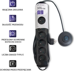 - Komfort i efektywność: 7 gniazd, przewód 1,5 m, nożny wyłącznik z podświetleniem.