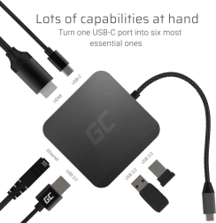 Maksymalizuj łączność jednym rozwiązaniem. GREEN CELL 6w1 dodaje wszystko, czego potrzebujesz: szybkie dane przez USB 3.0, stabilną sieć dzięki Gigabit Ethernet, ostry obraz z HDMI do 4K oraz jednoczesne ładowanie przez USB‑C Power Delivery do 87 W. Idealnie pasuje do ultrabooków takich jak APPLE MacBook, DELL XPS, ASUS ZenBook, LENOVO ThinkPad i innych z USB‑C.