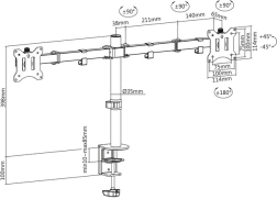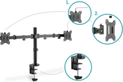 Obsługuje monitory o przekątnej 15" do 32" z VESA 75/100 i udźwigiem do 8 kg na jeden monitor.