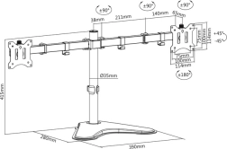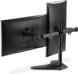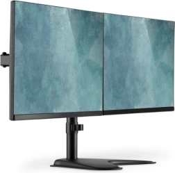 Podwójny stojak biurkowy na monitory umożliwia elastyczne ustawienie pozycji dla dwóch monitorów w rozmiarze 15''–32''. Dzięki możliwości pochylania, obracania i regulacji wysokości zapewnia idealną ergonomię dla zdrowej pozycji pracy.