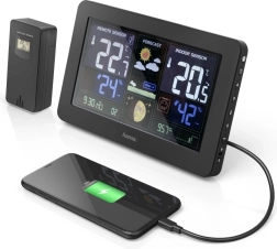 Ta cyfrowa stacja meteorologiczna jest idealna dla każdego, kto chce mieć dokładne informacje o pogodzie bezpośrednio w domu. Wyposażona jest w kolorowy wyświetlacz, na którym możesz obserwować zarówno wewnętrzną, jak i zewnętrzną temperaturę oraz wilgotność, fazy księżyca i ciśnienie atmosferyczne.
