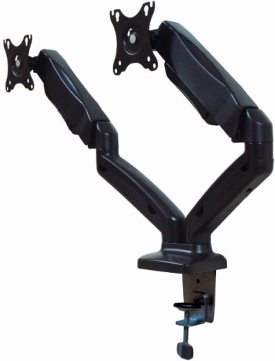 Uchwyt z siłownikiem gazowym jest przeznaczony dla użytkowników dwóch monitorów, którzy chcą zwiększyć komfort swojej pracy.