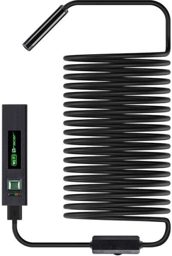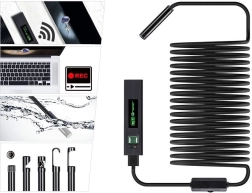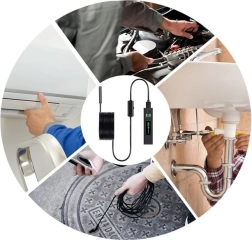W zestawie znajdują się praktyczne nasadki – haczyk, magnes i lusterko, dzięki którym nie tylko zobaczysz, ale też wyciągniesz drobne elementy z wąskich przestrzeni. Osłona uszczelniająca pozwala dodatkowo na inspekcję w wilgotnym środowisku lub pod wodą. Wbudowany akumulator Li‑ion 3,7 V/500 mAh zapewnia mobilną pracę bez kabli.