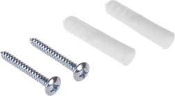 W zestawie znajdują się podstawowe materiały montażowe, takie jak śruby i kołki rozporowe, ułatwiające prostą instalację na ścianie.