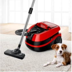 Praktyczne wyposażenie obejmuje turkoszczotkę do głębokiego wyczesywania włókien i sierści, duży zbiornik na wodę 5 l dla dłuższego sprzątania bez przerw oraz 12-metrowy promień działania dla wygodnego przemieszczania się między pomieszczeniami. Zintegrowane końcówki – szczelinowa i do tapicerki – zawsze pod ręką.