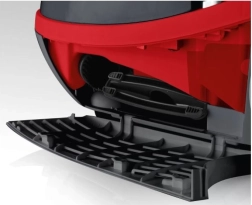 Długi przewód i promień działania do 12 metrów umożliwiają sprzątanie kilku pomieszczeń bez częstego przepinania. Duże koła zapewniają łatwe manewrowanie po podłogach.