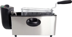 Dzięki płynnej regulacji temperatury łatwo dopasujesz ustawienia do różnych składników – od delikatnych warzyw po soczyste mięso. Stal nierdzewna zastosowana w korpusie, pokrywie i grzałce gwarantuje długą żywotność, odporność na plamy i prostą pielęgnację. Ergonomiczny uchwyt kosza ułatwia bezpieczną obsługę, a antypoślizgowe nóżki stabilnie utrzymują frytkownicę na miejscu.