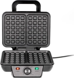 Korzystanie z waflownicy jest naprawdę intuicyjne! Dzięki nieprzywierającej powłoce gorących płyt łatwo wyjmiesz gotowe gofry, a następnie wyczyścisz urządzenie. Termostat utrzymuje optymalną temperaturę do wypieku gofrów, a lampki kontrolne informują, kiedy urządzenie jest gotowe do pracy i pieczenia. Dzięki płynnej regulacji temperatury możemy ustawić czas pieczenia od 5 do 15 minut w zależności od użytych składników i naszych preferencji smakowych. Waflownica umożliwia pieczenie dwóch dużych gofrów jednocześnie, więc mamy pewność, że każda porcja będzie ciepła i chrupiąca! Urządzenie zajmuje bardzo mało miejsca, dzięki czemu można je zabrać ze sobą także na wyjazd, a możliwość przechowywania w pozycji pionowej oszczędza miejsce w kuchennych szafkach.