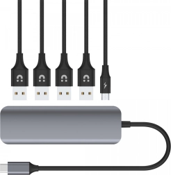 Uniwersalne połączenie: Łatwe podłączenie do czterech urządzeń peryferyjnych, niezależnie czy to myszy, pamięci flash, tablety graficzne czy duże dyski zewnętrzne. uHUB P5+ oferuje różne warianty parametrów, więc każdy znajdzie idealny koncentrator dla siebie.
