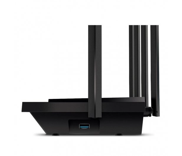 Router oferuje nowoczesne zabezpieczenia z obsługą WPA3, zaporą SPI oraz kontrolą rodzicielską. Posiada także jeden port USB 3.0, cztery gigabitowe porty LAN oraz jeden gigabitowy port WAN, co zapewnia elastyczność przy rozbudowie sieci.
