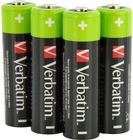 Akumulatory ładowalne Verbatim AA oferują do pięciokrotnie dłuższy czas pracy niż zwykłe baterie alkaliczne.