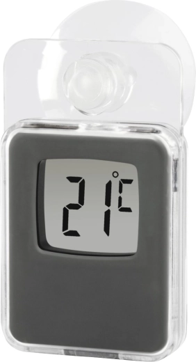 Praktyczny okienny termometr do użytku domowego i zewnętrznego z czytelnym wyświetlaczem cyfrowym. Odporność na warunki pogodowe, łatwy montaż za pomocą przyssawki oraz zakres pomiaru od -20 °C do +50 °C czynią z tego termometru idealny wybór do każdego okna.