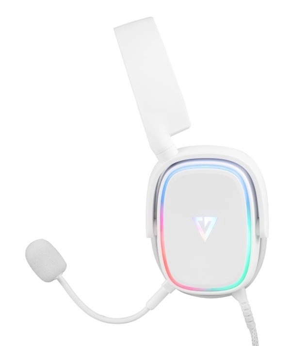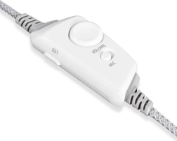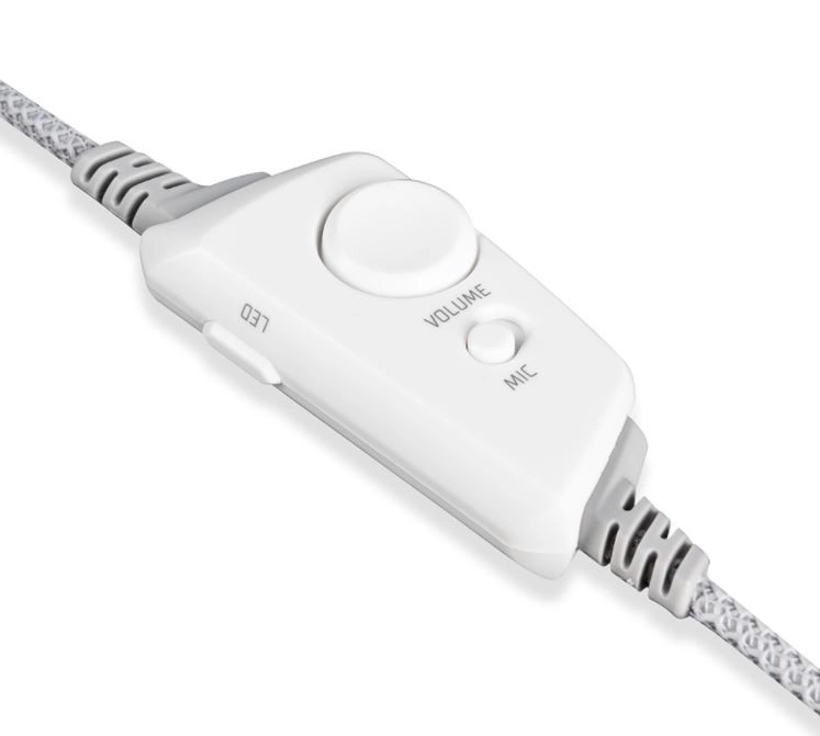 Pilot in-line na plecionym kablu 2,2 m umożliwia zmianę głośności, wyciszenie mikrofonu oraz przełączanie trybów LED (7 kolorów + efekt tęczy).